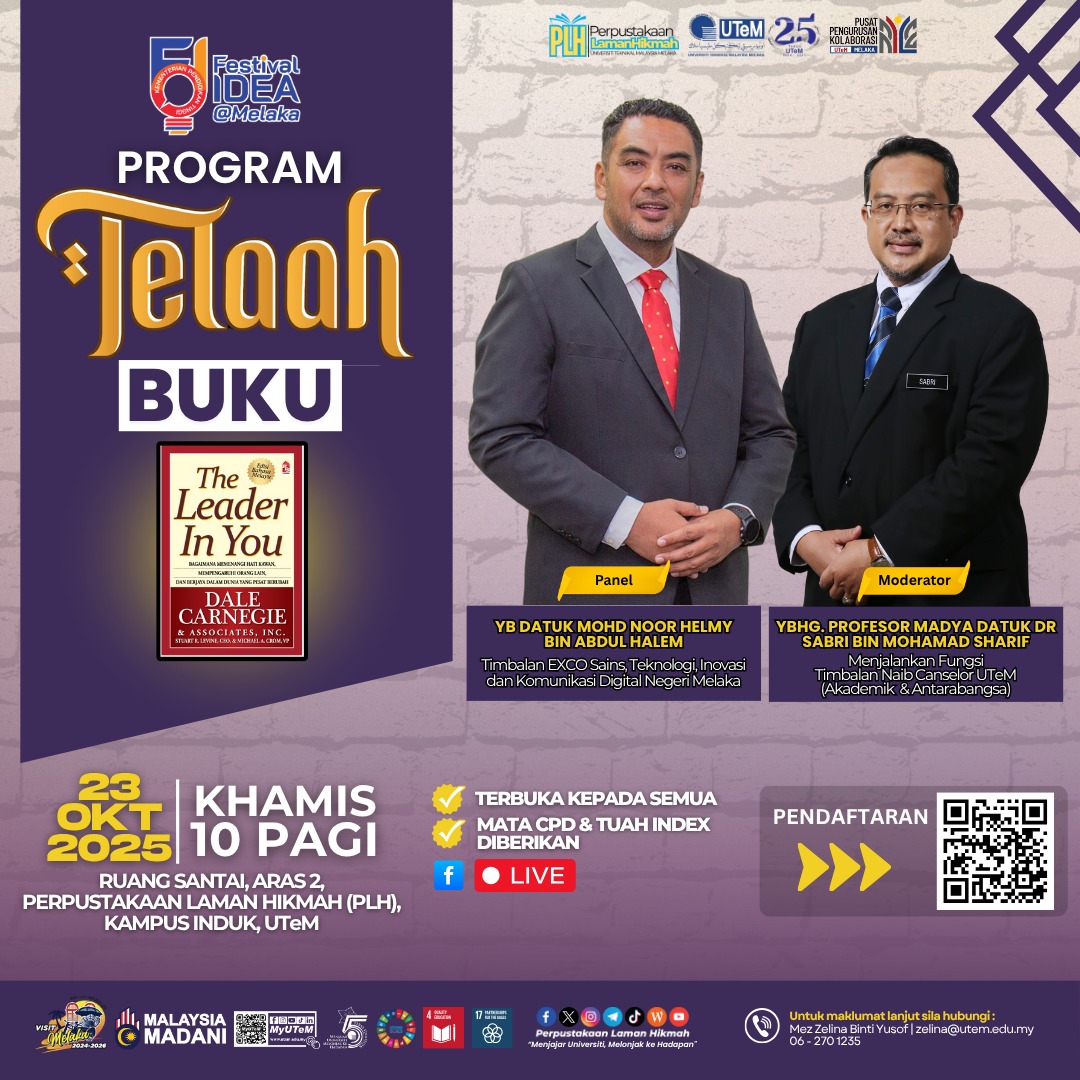 Perpustakaan Laman Hikmah, Universiti Teknikal Malaysia Melaka, Hang Tuah Jaya,76100 Durian Tunggal, Melaka.