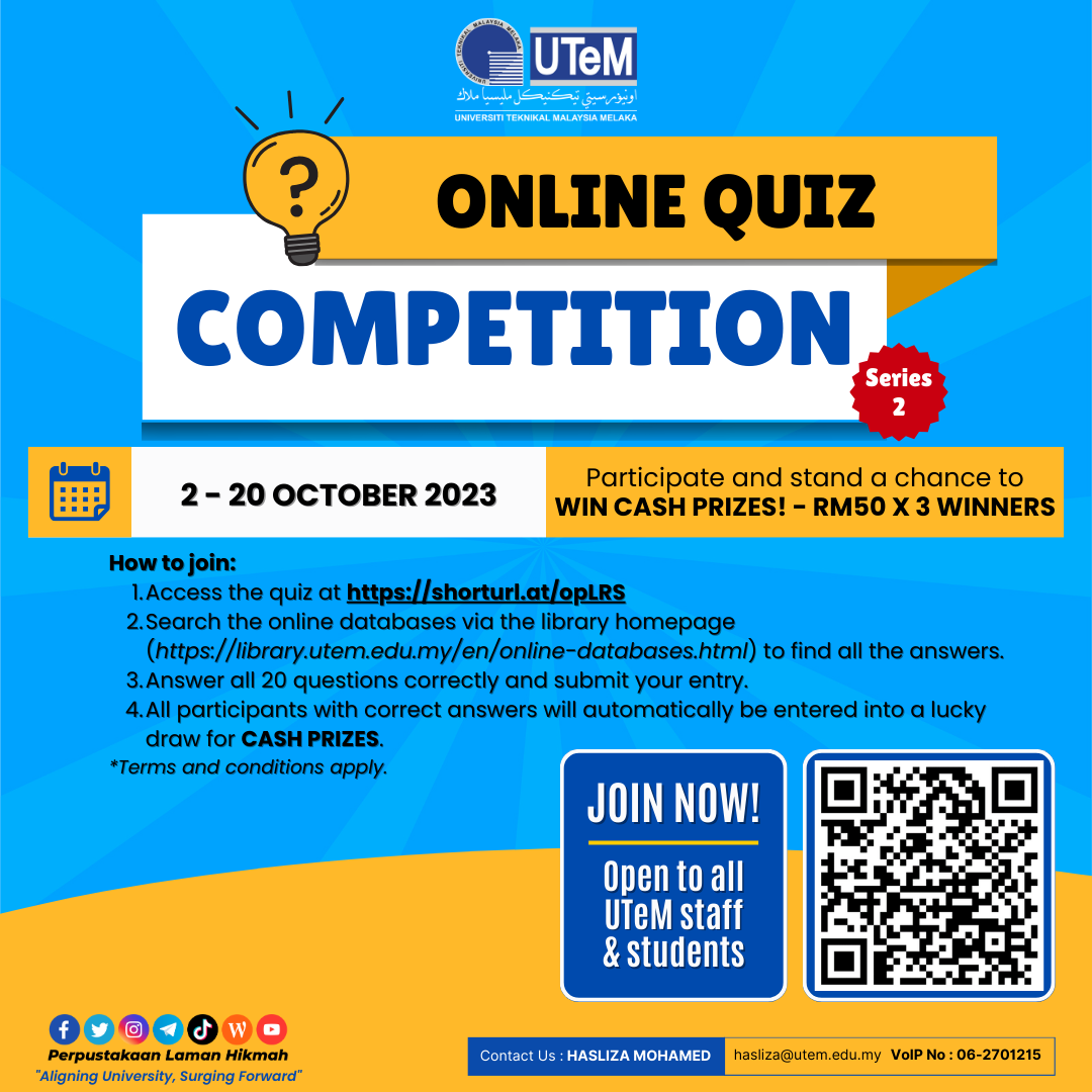 Perpustakaan Laman Hikmah, Universiti Teknikal Malaysia Melaka, Hang Tuah Jaya,76100 Durian Tunggal, Melaka.