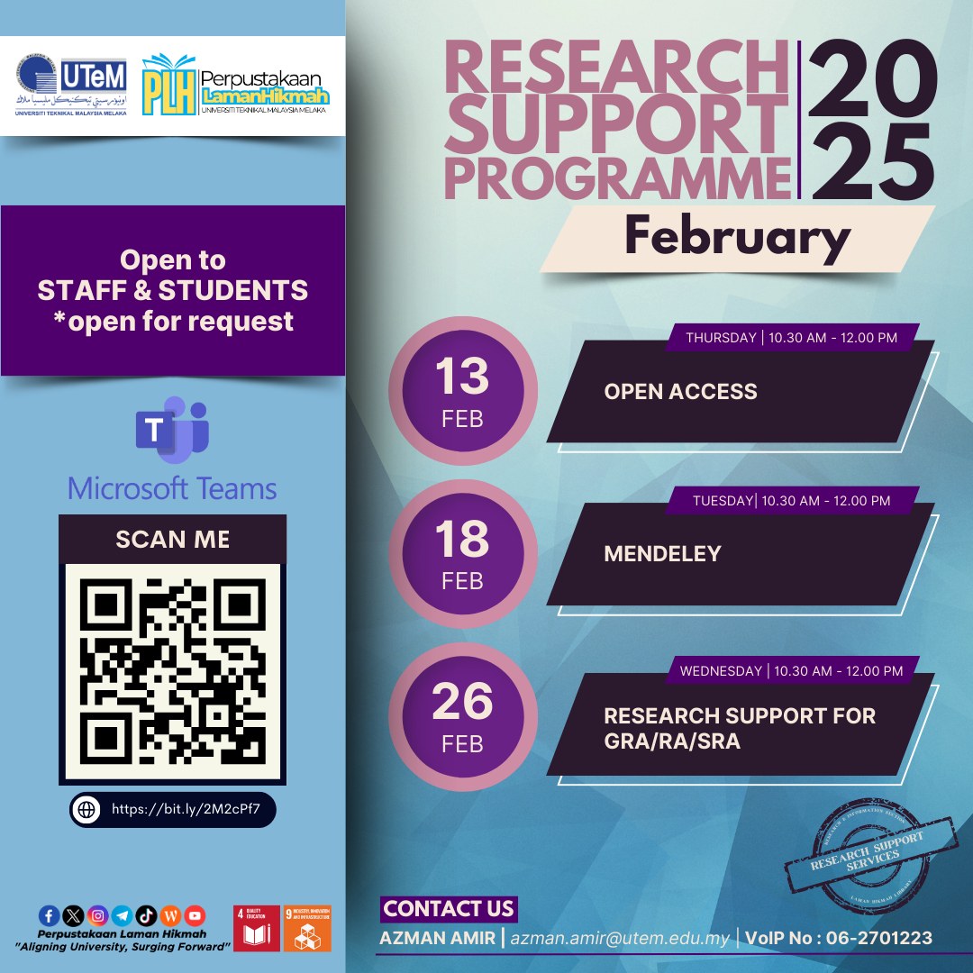 Perpustakaan Laman Hikmah, Universiti Teknikal Malaysia Melaka, Hang Tuah Jaya,76100 Durian Tunggal, Melaka.