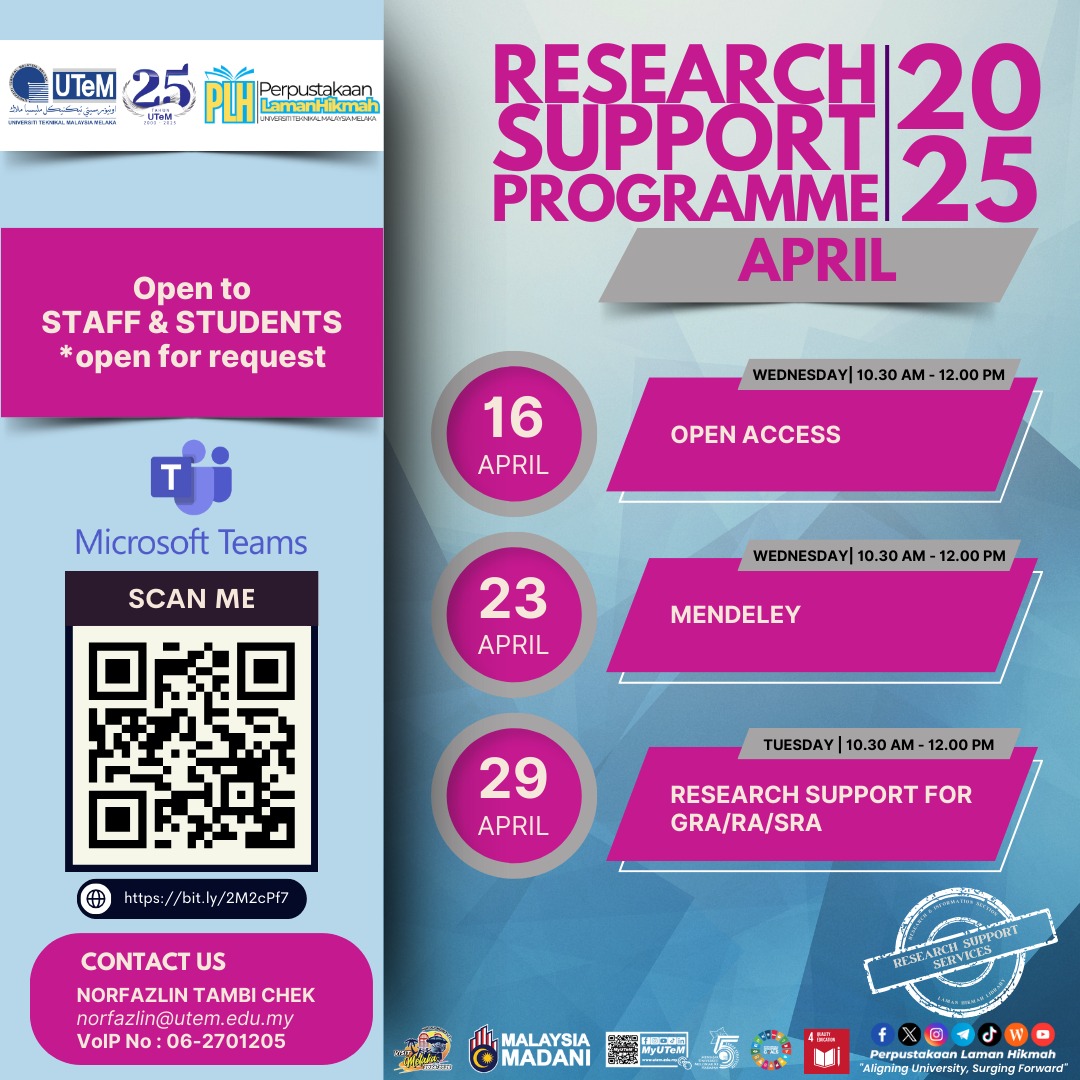 Perpustakaan Laman Hikmah, Universiti Teknikal Malaysia Melaka, Hang Tuah Jaya,76100 Durian Tunggal, Melaka.