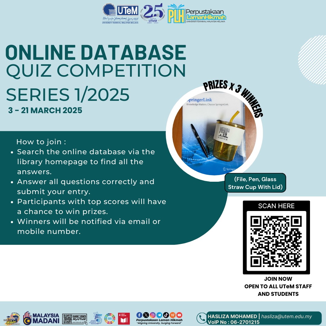 Perpustakaan Laman Hikmah, Universiti Teknikal Malaysia Melaka, Hang Tuah Jaya,76100 Durian Tunggal, Melaka.