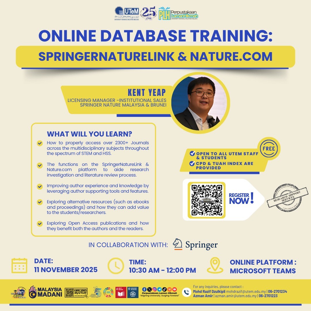 Perpustakaan Laman Hikmah, Universiti Teknikal Malaysia Melaka, Hang Tuah Jaya,76100 Durian Tunggal, Melaka.